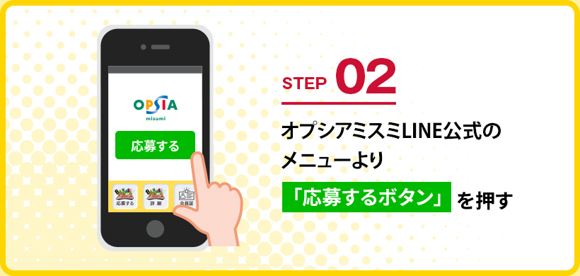 - ・ご当選者様へのみ、オプシアミスミLINE公式アカウントより応募時に利用されたLINE アカウントへご連絡させていただきます。